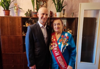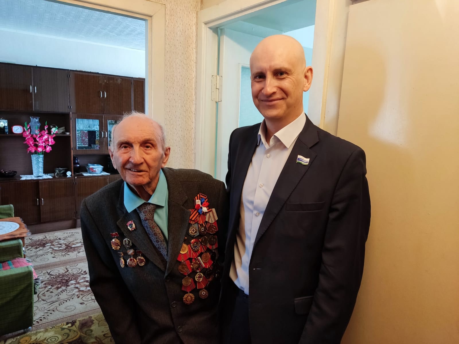 В предверии 77-ой годовщины Владимир Рябцун побывал с Главой городского округа «Город Лесной» Сергеем Черепановым и коллегами в гостях у ветеранов, тружеников тыла и детей войны. Владимир Рябцун произнес слова благодарности за подвиг во имя спасения человечества от фашизма и выразил глубокое уважение за труд во имя сохранения нашей Родины. Также прекрасным дополнением к поздравлениям и подаркам для ветеранов стал оркестр войсковой части 3275, который во дворах, где проживают ветераны исполнил песни военных лет.