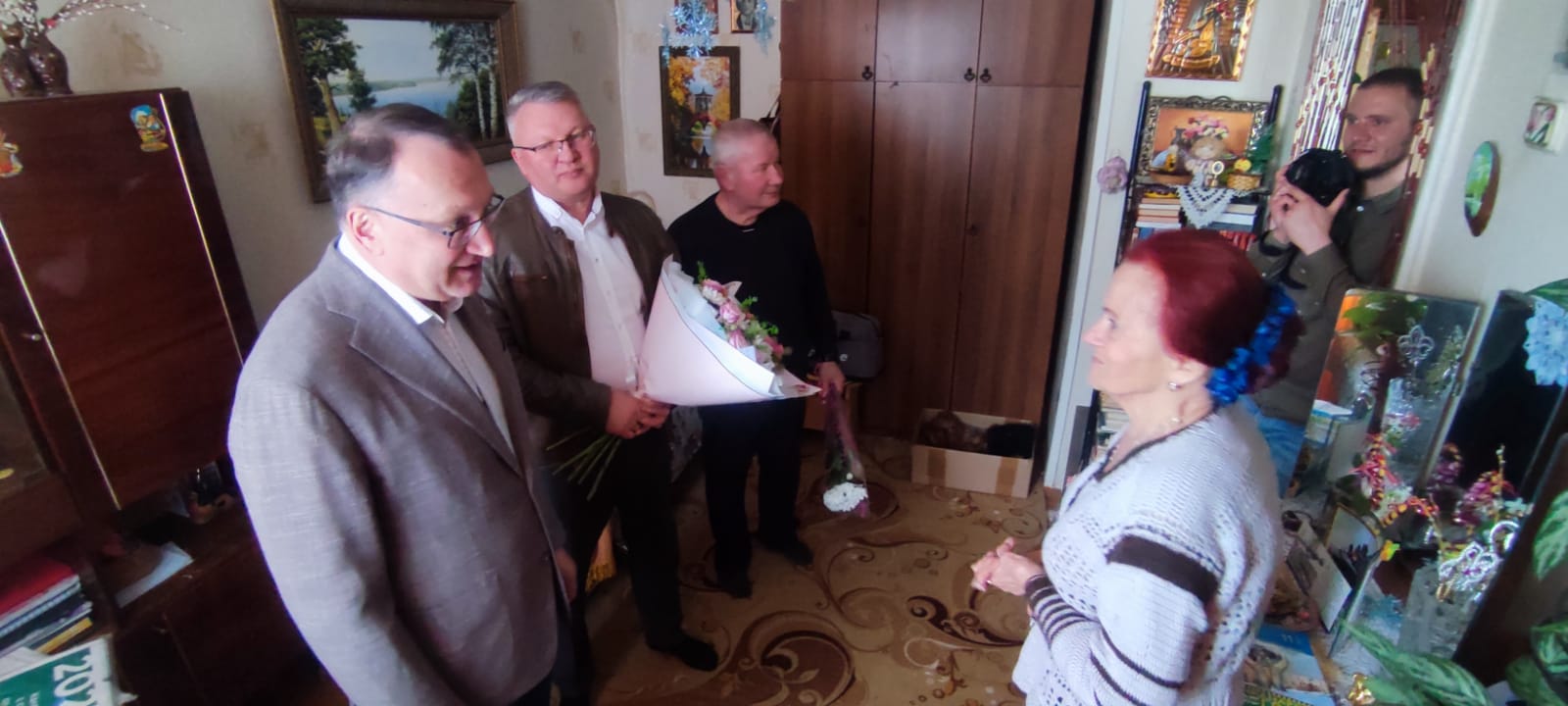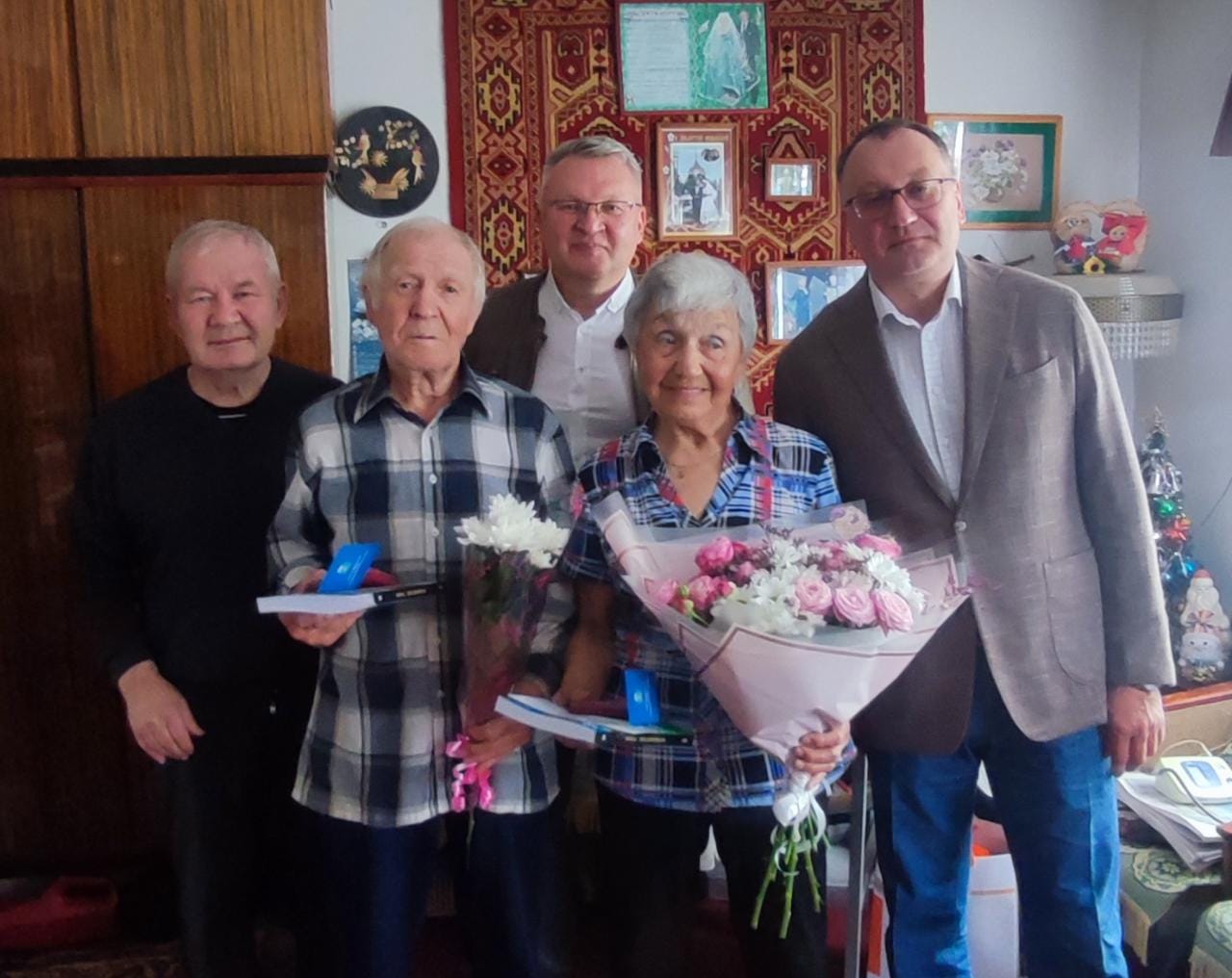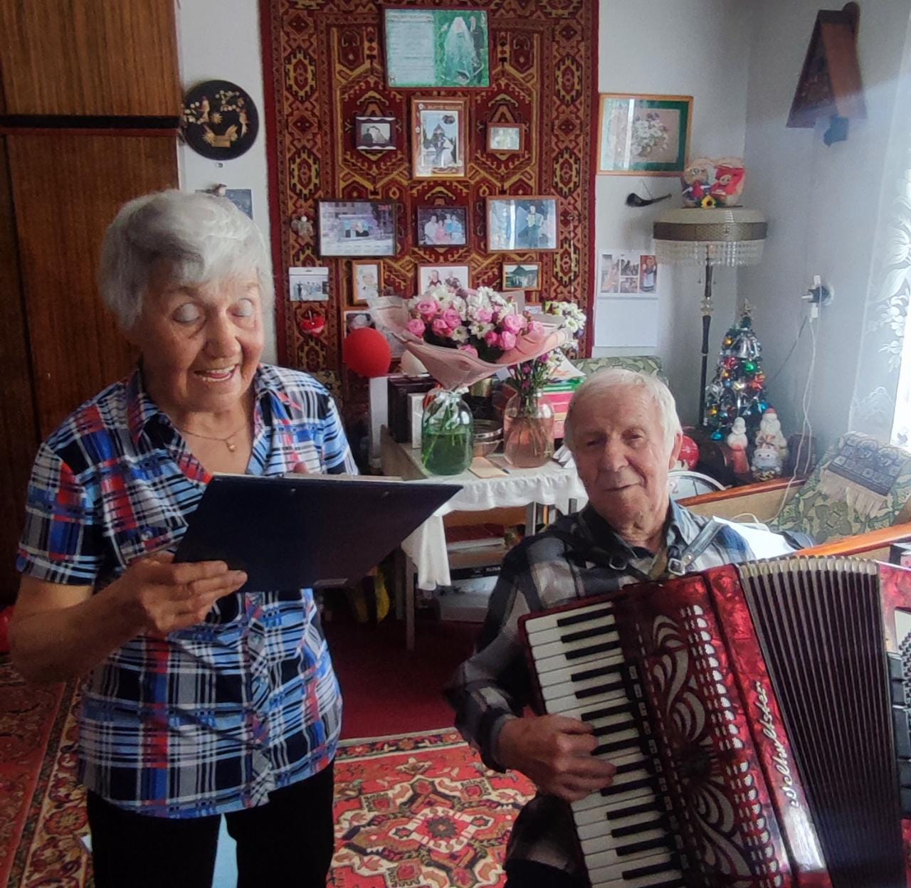 «Я преклоняюсь перед каждым из этих ветеранов, – сказал Сергей Владимирович. – Сколько в них души, боевого настроя, оптимизма. Чета Ведерниковых, например, наряду с приближающейся 65-й годовщиной города отметила на днях и свой личный юбилей – 65 лет совместной жизни. А это значит, что их молодая семья росла и крепла вместе с городом. Глава семьи – баянист, его супруга – исполнительница народных песен. Вот так и идут, с песней по жизни, с песней они и нас встретили».