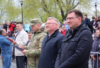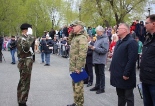 А на следующий день парламентарий поприветствовал участников городского смотра строя и песни. Под открытым небом, чеканя шаг, на плац вышли 11 команд, представляющих все поколения лесничан.