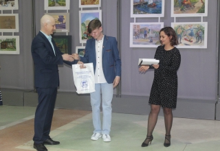 Завершился этот праздничный день посещением Всероссийского конкурса – выставки работ юных художников из закрытых городов Росатома – «Большая прогулка по маленькому городу», посвященной 75-летию города Лесного и ФГУП «Комбинат «Электрохимприбор». Рябцун В.В. совместно с заместителем главы города Виноградовой Е.А. и директором Школы искусств Кунгиной А.В. поздравили победителей конкурса, преподавателей и гостей с открытием замечательной экспозиции и вручили подарки от депутата Законодательного Собрания юным дарованиям. В состав жюри входил известный российский художник Никас Сафронов, который в своем послании собравшимся пожелал «хранить любовь к малым городам и развивать творческий успех!»