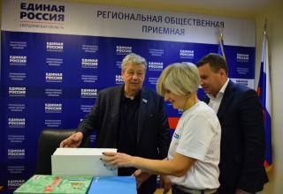 Организовало сбор книг для беженцев Свердловское региональное отделение «Единой России». Аркадий Михайлович принес в региональную общественную приемную партии пять коробок книг из семейной библиотеки: классику, приключения, фантастику, образовательную литературу, рассказы и сказки для детей.