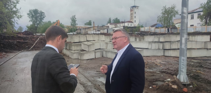 Первой строительной площадкой, которую в ходе своего визита парламентарий посетил вместе с главой Верхней Туры Иваном Весниным, стала набережная городского пруда.