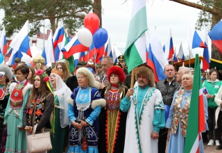 Виктор Якимов с трибуны митинга обратил внимание на то, что среди участников митинга – множество каменцев в национальных костюмах.