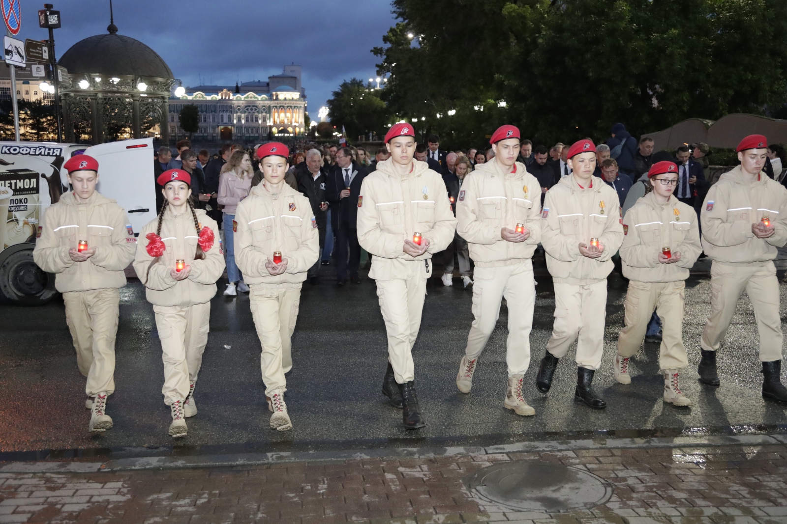 По давней традиции уральцы прошли со свечами в руках по пешеходной зоне вдоль проспекта Ленина в Екатеринбурге. По окончании шествия участники мероприятия выстроились на площади 1905 года в слово «Помним».