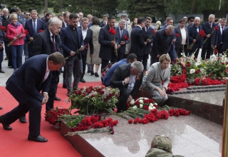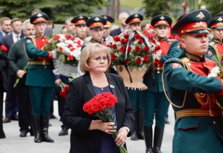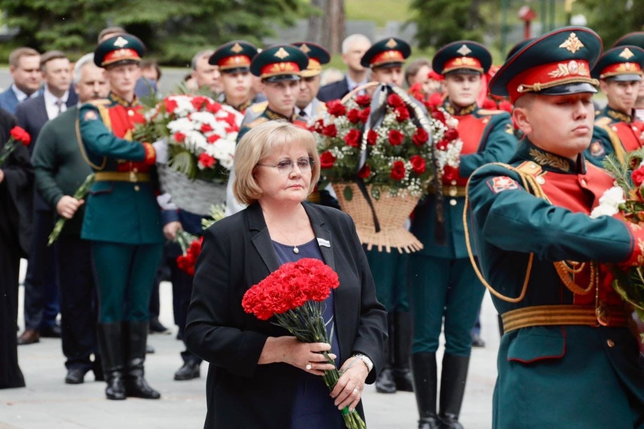 Председатель Законодательного Собрания Свердловской области Людмила Бабушкина и депутаты регионального парламента приняли участие в торжественно-траурной церемонии возложения цветов в День памяти и скорби – день начала Великой Отечественной войны.