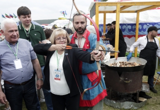 На площадке Сабантуя работало 20 национальных подворий, на которых можно было увидеть подлинные артефакты традиционного быта и отведать блюда по старинным рецептам.