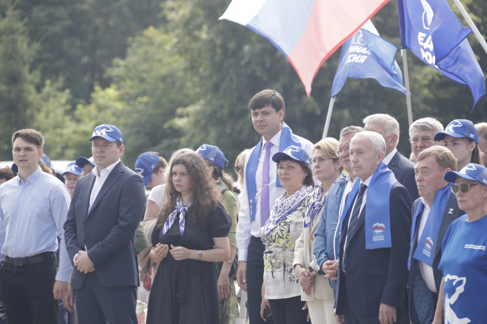 Депутаты Законодательного Собрания Свердловской области во главе с председателем Людмилой Бабушкиной и первым заместителем председателя Виктором Шептием приняли участие в митинге, посвященном поддержке специальной военной операции России на Украине.