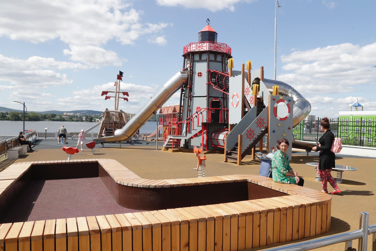 Не уступает по значимости и внешнему виду и другой новый социальный объект – набережная «Тагильская лагуна –2»,где не только одетые в гранит берега водоема, но и огромный детский парк. Его называют еще «умным парком» за многофункциональность и развивающее направление. Строительство парка на месте заброшенной территории проходило в рамках реконструкции городского дворца детского и юношеского творчества.