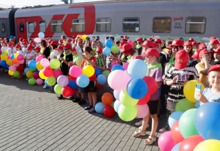 По традиции на железнодорожном вокзале состоялась торжественная церемония, посвященная отправке состава.