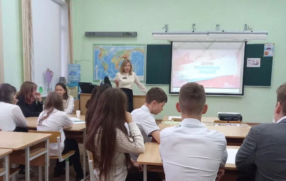 Урок провела Анна Сергеевна Федорова, классный руководитель 8 «Б». Учитель задала теме деликатную, домашнюю и, в то же время, серьезную тональность. Говорили о многом — в первую очередь, о возрасте, о значении слова «пожилой», о родственниках, об известных личностях, о качествах, которые объединяют людей пожилого возраста. К слову, по классификации Всемирной Организации Здравоохранения пожилой возраст начинается с 60 лет.