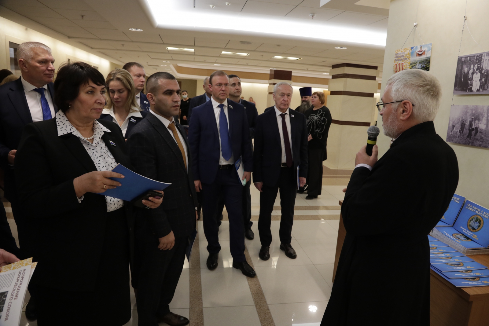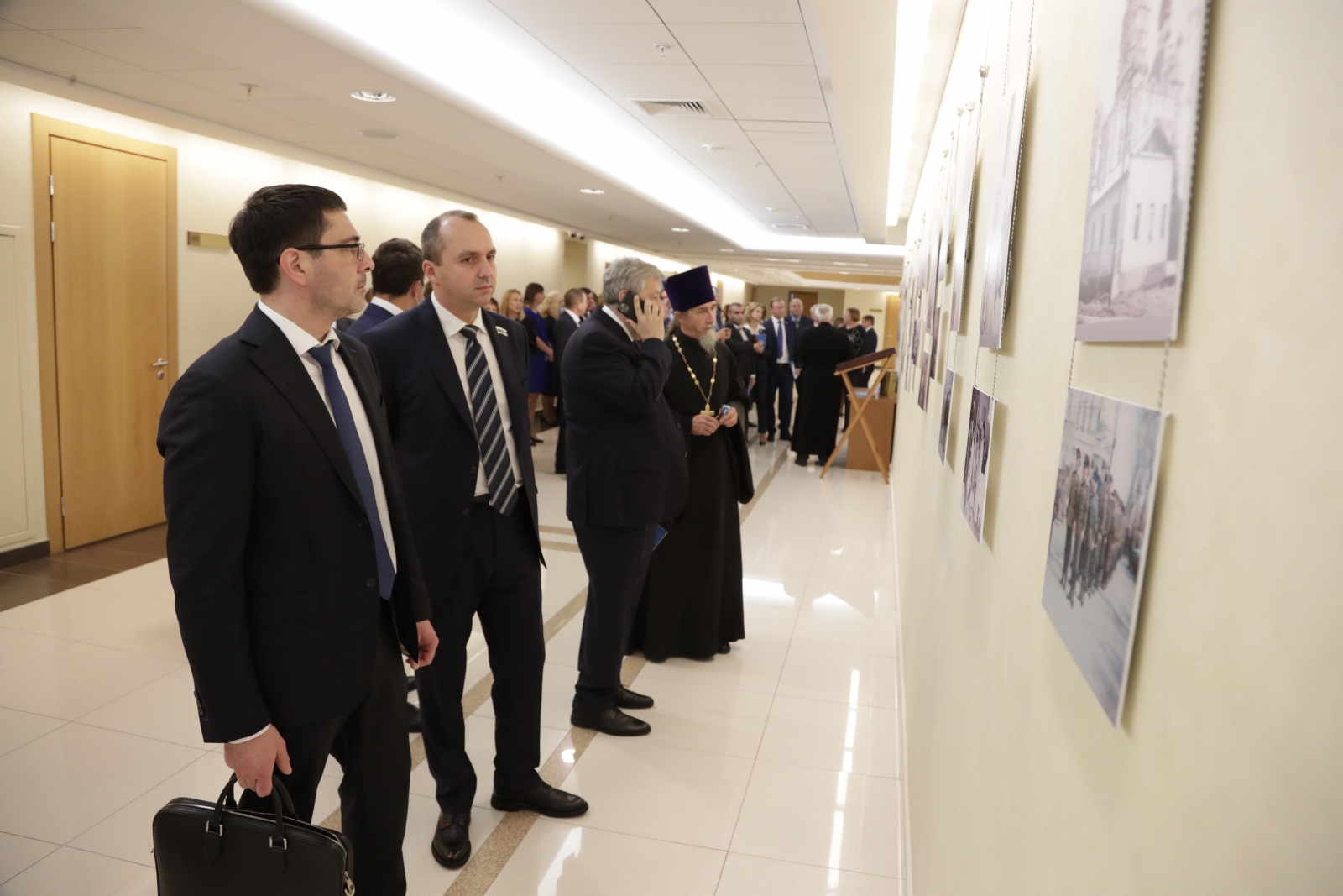 В Законодательном Собрании состоялось торжественное открытие фотовыставки «Огонь веры, зажигающий сердца» из архива уральского пастыря, митрофорного протоиерея Владимира Зязева, посвящённой возрождению Покровского кафедрального собора в Камышлове.