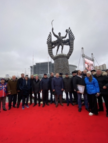 В День народного единства депутаты Законодательного Собрания приняли участие в торжественной церемонии открытия скульптурной композиции «Эпоха», посвященной семикратному чемпиону мира по хоккею с мячом Николаю Дуракову и команде «СКА-Свердловск».