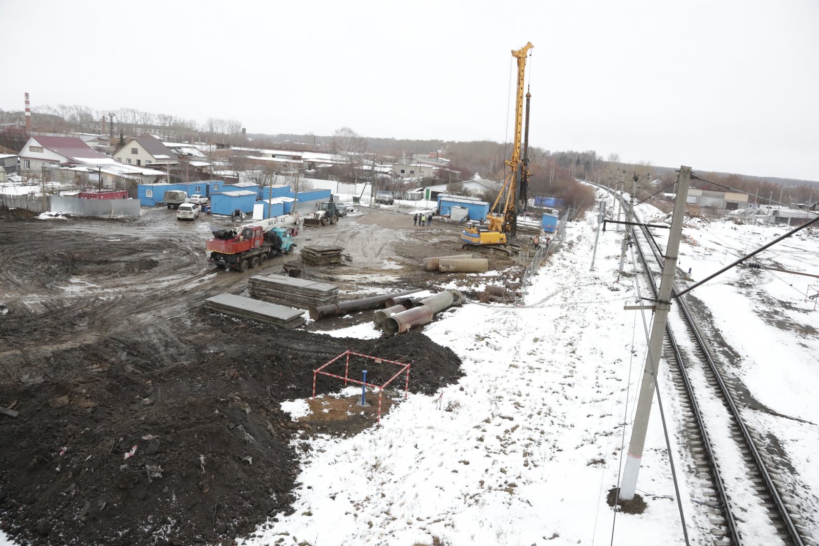В ходе рабочей поездки Людмила Бабушкина посетила стройплощадку будущей эстакады. Как сообщили строители, возведение объекта идет строго по графику: проведена подготовка грунта, сейчас забивают сваи, ведут переустройство водопровода.