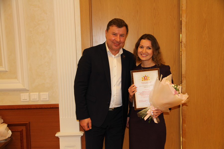 Депутат Законодательного Собрания Свердловской области Сергей Мелехин и депутат Екатеринбургской городской Думы Татьяна Вяткина вручили в здании областного парламента награды педагогам Верх-Исетского района.