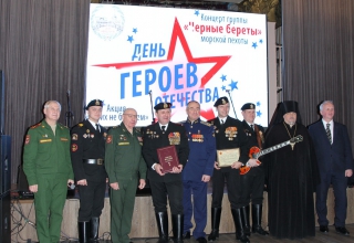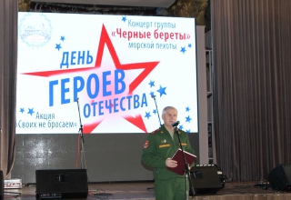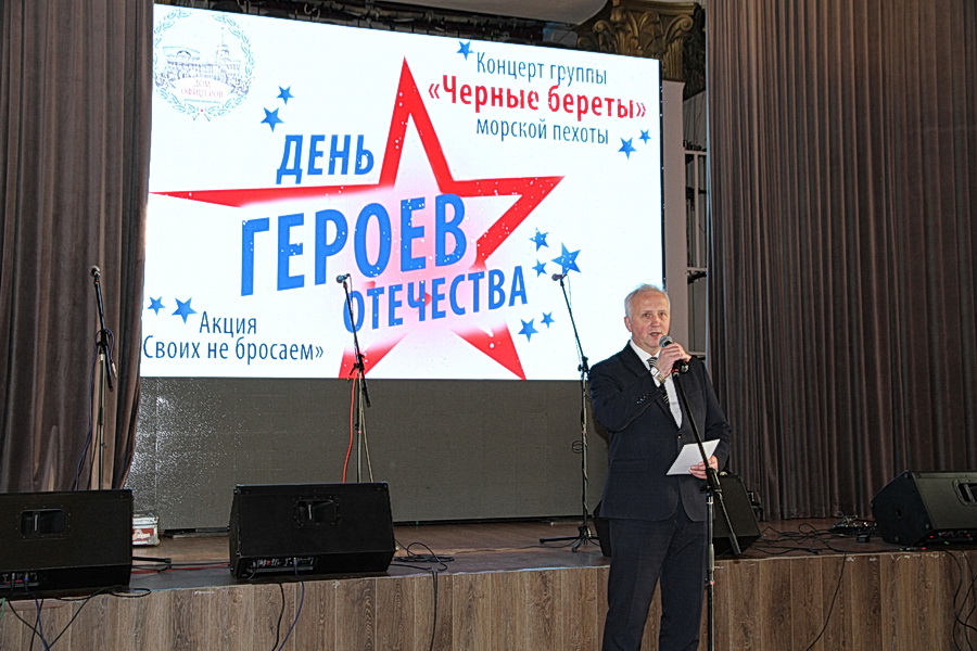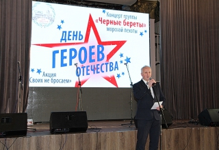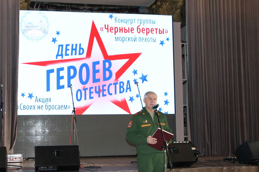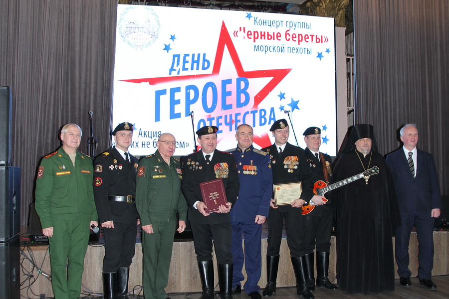 При поддержке депутатского центра Сергея Мелехина в честь Дня Героев Отечества и десятилетия выхода в свет книги «Герои России Уральского федерального округа» в Доме офицеров Центрального военного округа прошел концерт известной группы морской пехоты «Черные береты».
