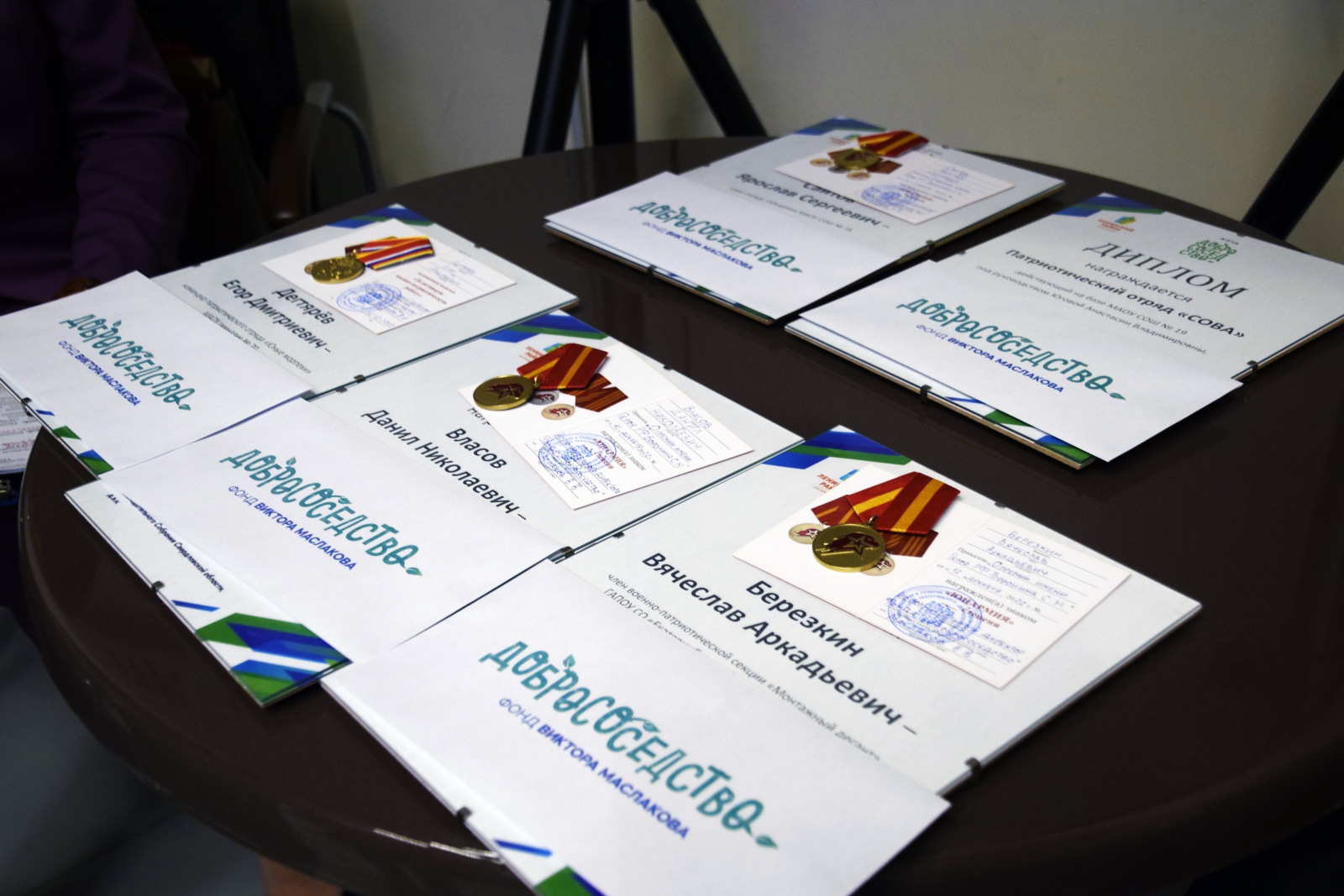 Семеро участников конкурса и пять отрядов были награждены памятными значками и благодарственными письмами Фонда «Добрососедство». Благодарственные письма были торжественно вручены и руководителям военно-патриотических отрядов.
