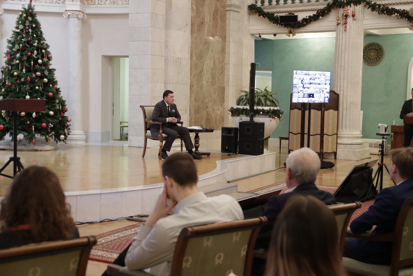 Председатель Законодательного Собрания Людмила Бабушкина и первый заместитель председателя регионального парламента Дмитрий Жуков приняли участие в мероприятии по подведению итогов 2022 года с представителями общественности, проведенного губернатором Свердловской области Евгением Куйвашевым.