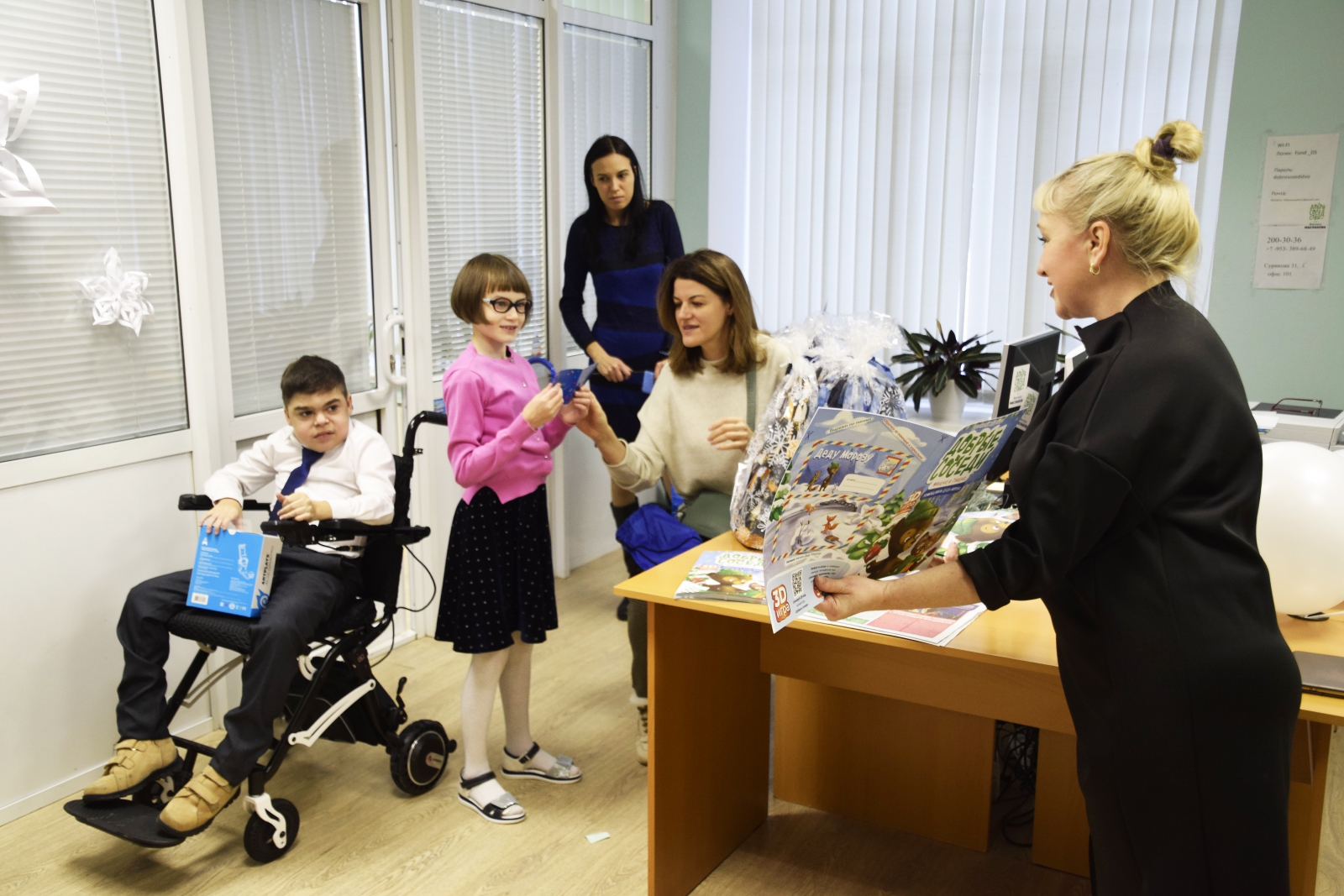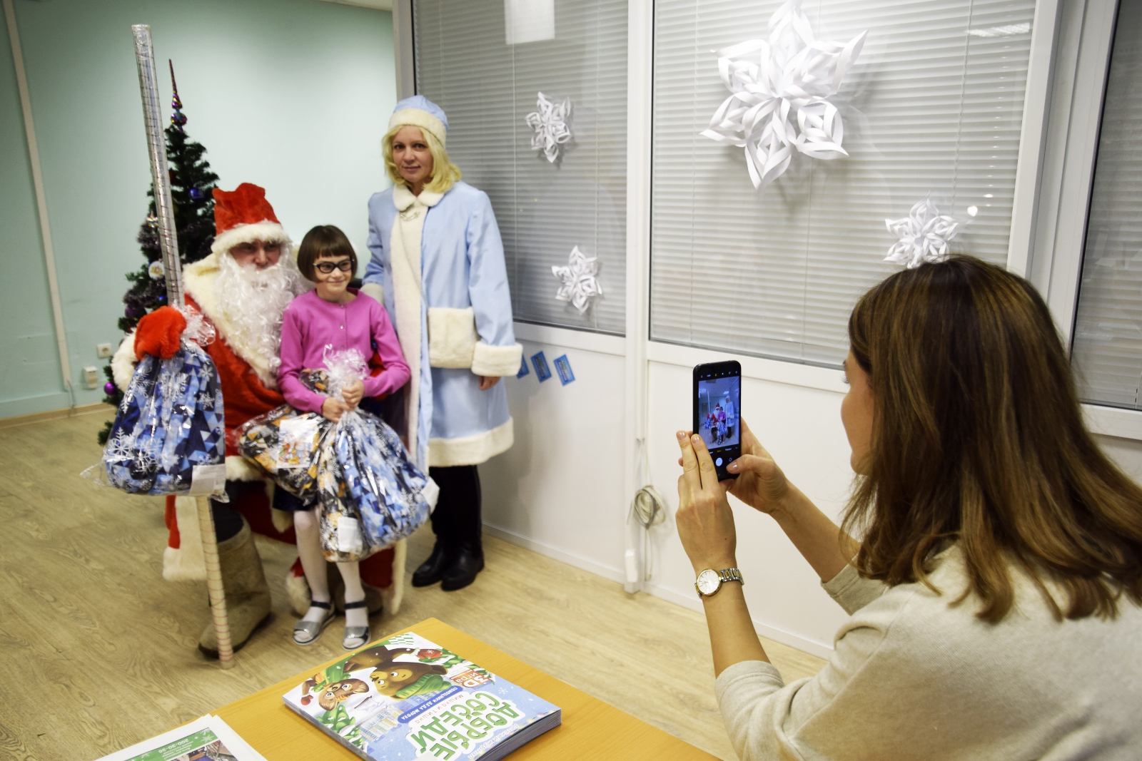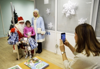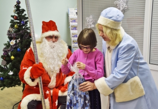 Также, совместно с коллективом Администрации Ленинского района, в пятницу было проведено небольшое праздничное мероприятие в приемной Фонда, в рамках которого подарки были переданы семьям детей с ограниченными возможностями здоровья. Малышей поздравили с наступающим Новым годом Дед Мороз и Снегурочка.