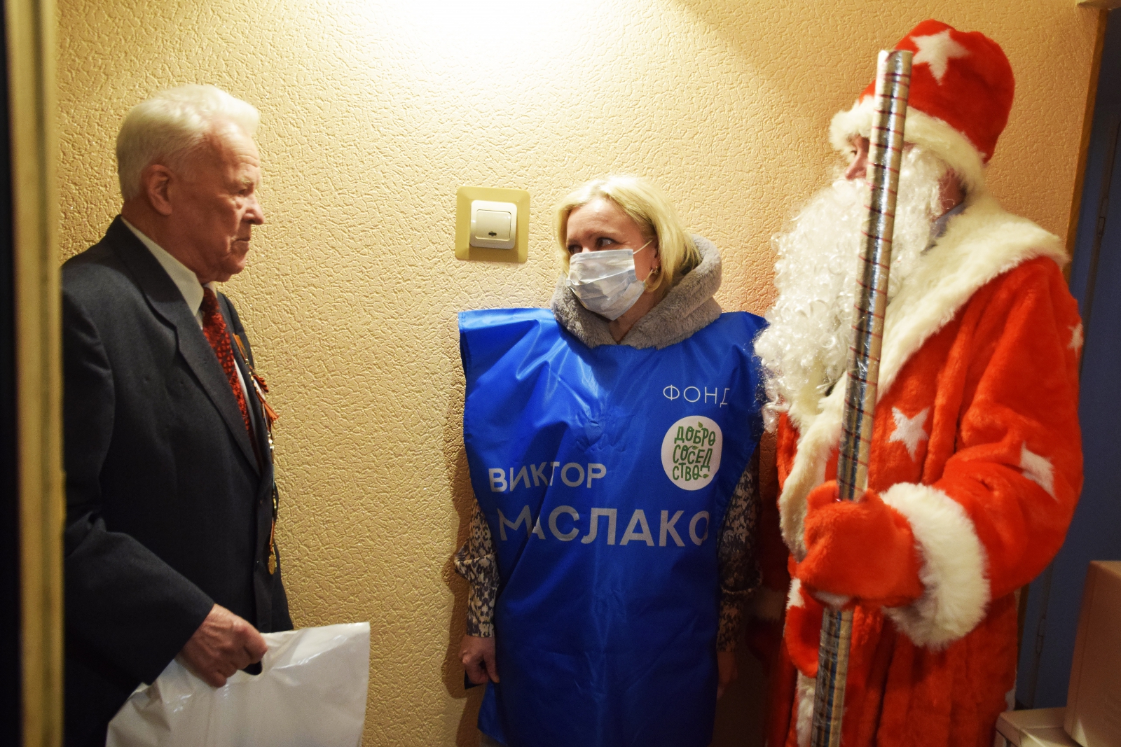 Заместитель председателя Законодательного Собрания Свердловской области, основатель Фонда «Добрососедство» Виктор Маслаков и команда волонтеров фонда поздравили с наступающими праздниками ветеранов и детей из Ленинского района Екатеринбурга.
