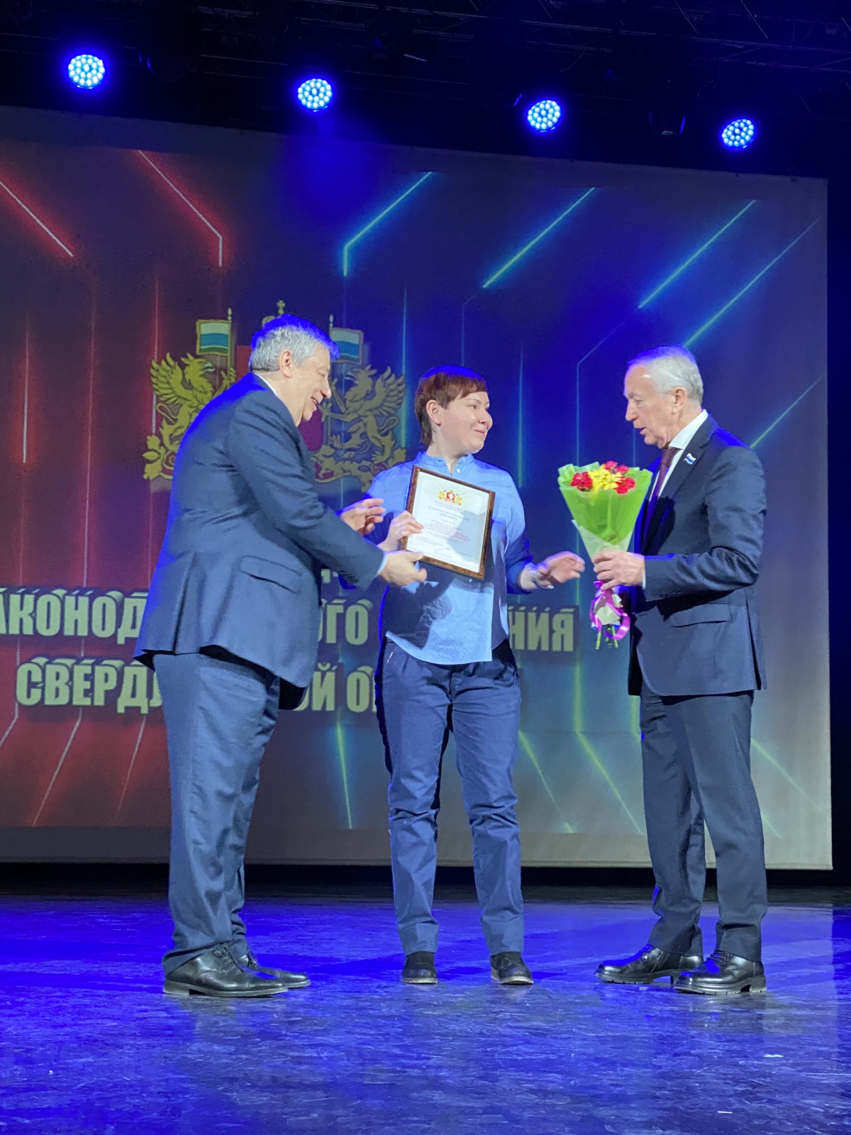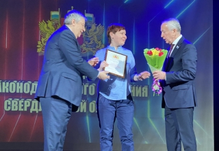 Аркадий Чернецкий и Вячеслав Погудин вручили награды Законодательного Собрания передовикам труда и активистам профсоюзного движения Свердловской области.