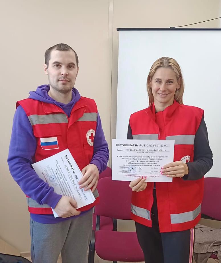 4-5 февраля 2023 года Свердловское отделение Российского Красного Креста провело занятия первой группы, в которой прошли обучение депутаты Законодательного Собрания Свердловской области Екатерина Есина и Александр Каптюг. По окончании курса выданы сертификаты.