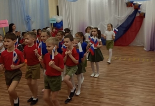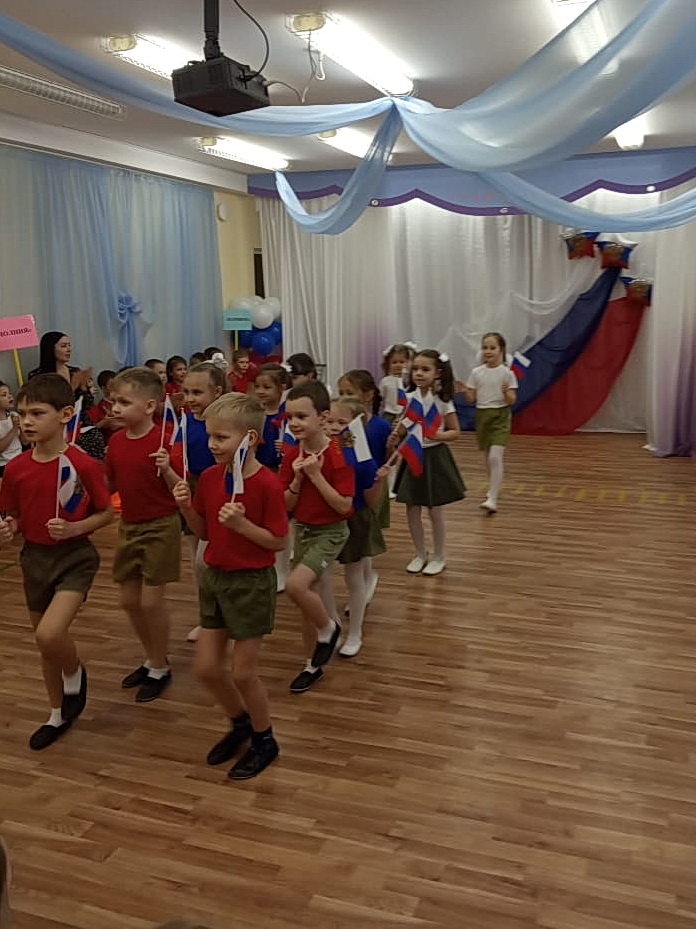 Соревновались четыре команды по восемь детей из подготовительных групп. Речевки, девизы, строевые приемы, бросание игрушечных гранат в корзины – все это проходило весело и с задором. Каждый участник веселых стартов заслужил сладкий подарок. Состязания в ловкости и строевой выучке проходили на фоне российской атрибутики, что придало детскому празднику особую значимость.
