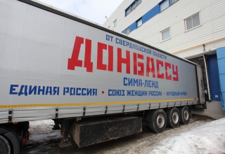 Гуманитарный груз собран Свердловским региональным отделением «Союза женщин России», ОНФ, региональным отделением «Единой России», компанией «Сима-Ленд».
