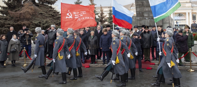 В Екатеринбурге состоялась церемония возложения цветов к памятнику воинам Уральского добровольческого танкового корпуса