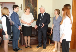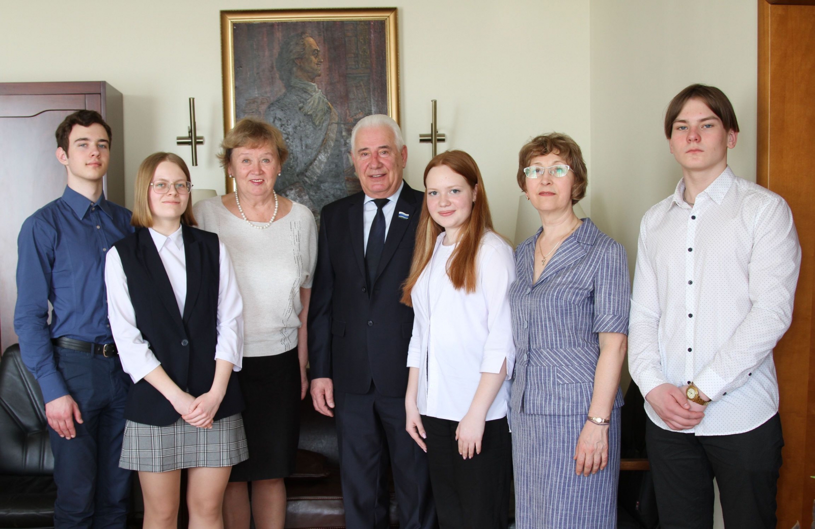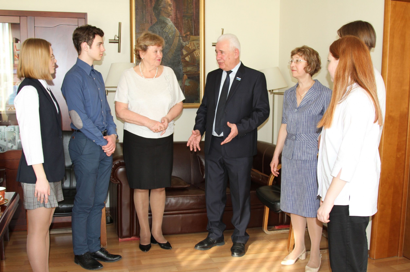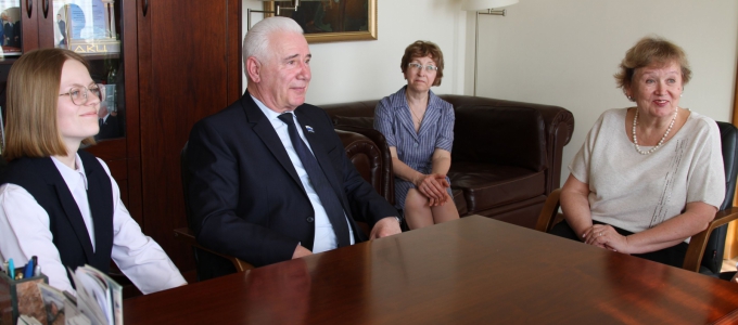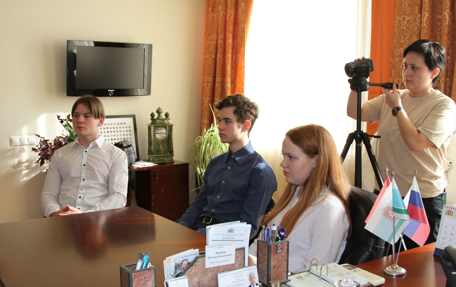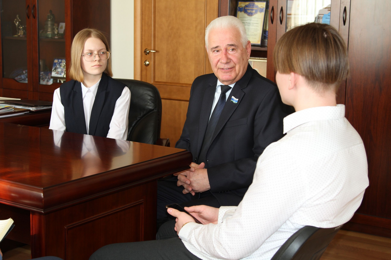 В парламентский центр Виктора Якимова представители школьного самоуправления Кристина Семиволкова, Вероника Букатина, Михаил Федяков и Егор Пинженин пришли с директором школы Натальей Говорухиной и ее заместителем Ольгой Зацепиной. Сообщив о конкурсе, в котором участвует школа, ребята задали вице-спикеру множество вопросов о местном самоуправлении и его становлении в Каменске-Уральском, о роли Виктора Якимова в развитии муниципалитета.