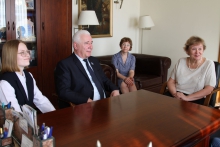 В парламентский центр Виктора Якимова представители школьного самоуправления Кристина Семиволкова, Вероника Букатина, Михаил Федяков и Егор Пинженин пришли с директором школы Натальей Говорухиной и ее заместителем Ольгой Зацепиной. Сообщив о конкурсе, в котором участвует школа, ребята задали вице-спикеру множество вопросов о местном самоуправлении и его становлении в Каменске-Уральском, о роли Виктора Якимова в развитии муниципалитета.
