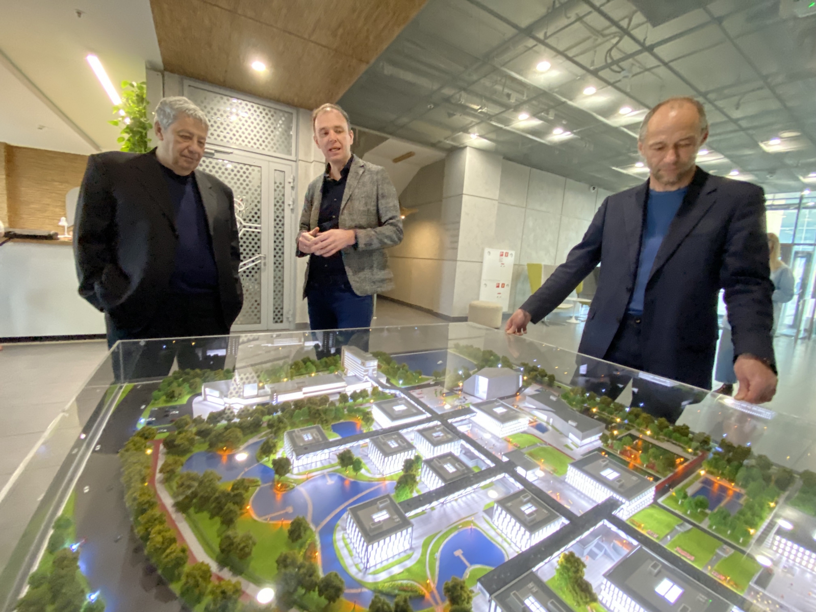 Глава СКБ Контур также показал Вице-президенту национального объединения строителей Аркадию Чернецкому макет строящегося Контур-Парка — будущего IT-кластера для работы, учебы и отдыха. В нем будут будут офисы на 3 тысячи человек, научно-образовательный центр «Акселератор IT-компетенций» (АКСИТ), спортивные площадки и скалодром для тренировок и международных соревнований. Все объекты впишутся в зеленый ландшафт, часть которого станет общественной зоной для жителей города.