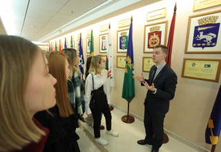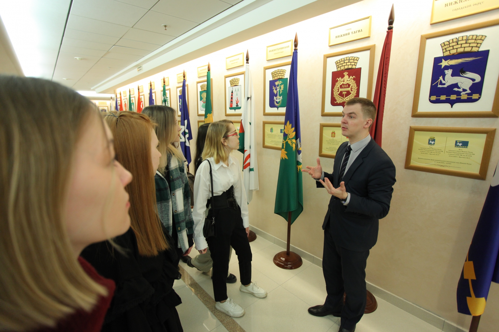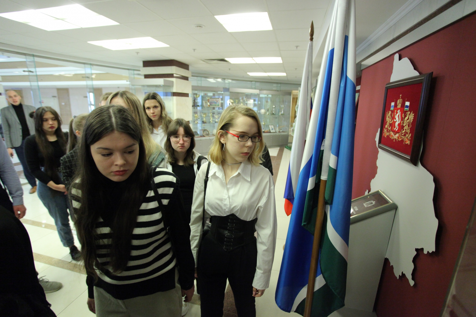 Для юных гостей была организована экскурсия по зданию регионального парламента. Ребята смогли увидеть музей Законодательного Собрания, зал официальных символов муниципальных образований Свердловской области и портретную галерею руководителей законодательных (представительных) органов Свердловской области с 1934 года по настоящее время.