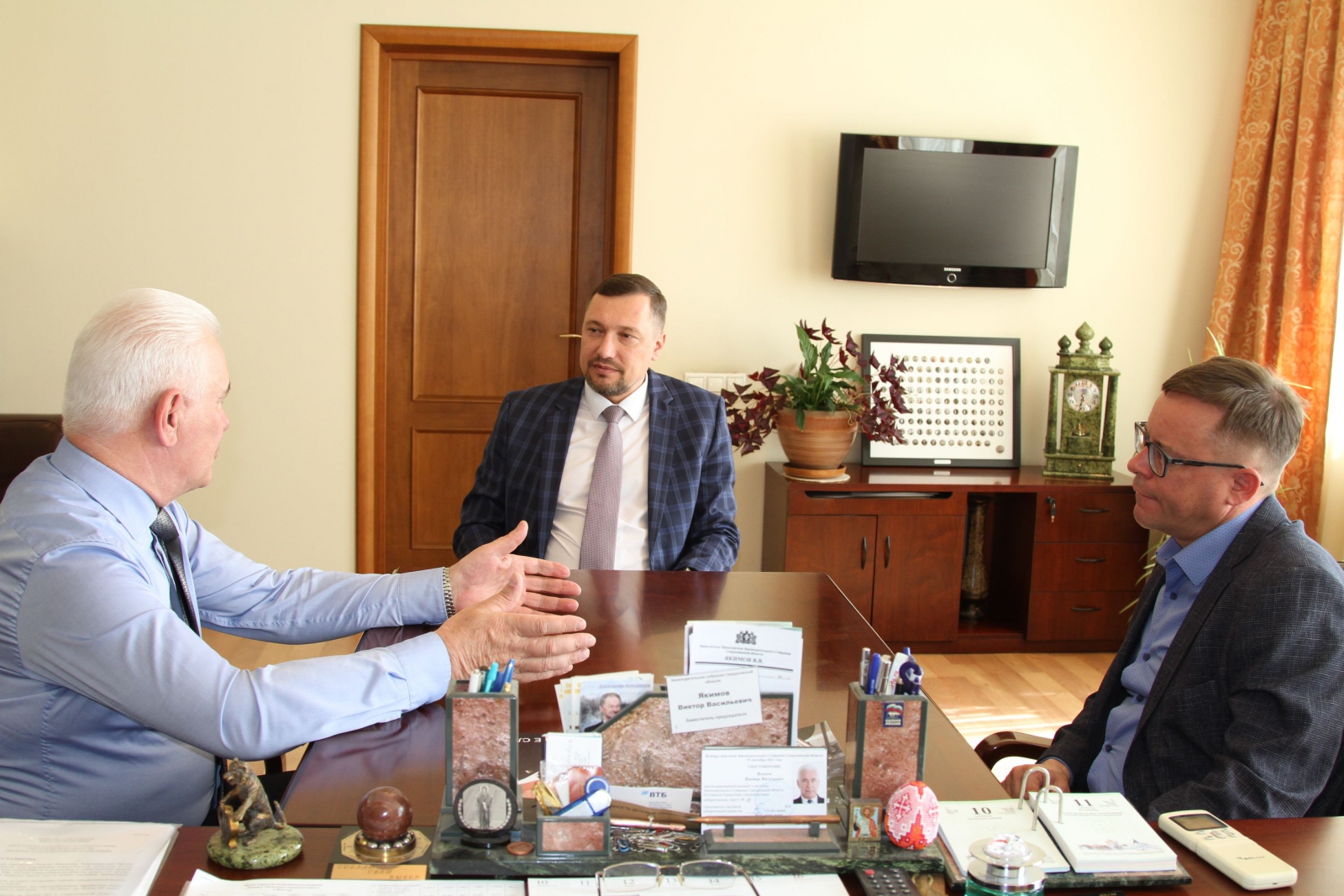 Виктор Якимов провел в своем депутатском центре совещание с главой Каменска-Уральского Алексеем Герасимовым и вице-мэром по социальной политике Денисом Нестеровым.