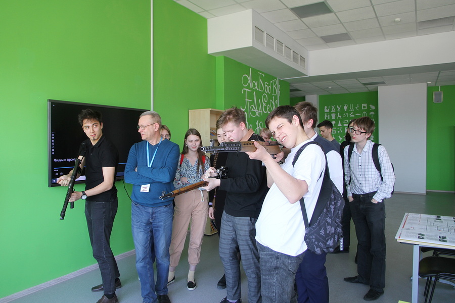Спикер и автор проекта военный журналист полковник запаса Владислав Майоров рассказал старшеклассникам школ №№ 25 и 163 о создании Оружия Победы на Урале, подготовке боевых резервов в Уральском военном округе, излечении раненных бойцов, эвакуации в Свердловскую область ведущих научных институтов, вузов, учреждений культуры из Москвы, Ленинграда, Минска, Киева, Харькова, других городов СССР. Сотрудник Уральского государственного военно-исторического музея офицер запаса Сергей Кончиков познакомил ребят с советским стрелковым оружием времен войны. Коллективам школ были переданы Плакаты Победы, выполненные в современной инфографике.
