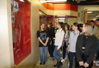 Еще одним шагом в развитии просветительского проекта «Вклад Урала в Победу» стало сотрудничество депутатского центра Сергея Мелехина с Домом офицеров Центрального военного округа, которым руководит Андрей Зуев. На встречу в это историческое здание пришли три группы студентов Свердловского областного педагогического колледжа. После лекции будущие педагоги побывали в Военно-историческом зале. Опытные экскурсоводы Юрий Хамитов и Дмитрий Барабанов рассказали ребятам о боевом пути прославленных уральских соединений, наших земляках - Героях Советского Союза. Здесь студенты впервые увидели многие виды вооружения, форму солдат и офицеров Красной Армии. Сильное эмоциональное впечатление на них произвела мультимедийная панорама «Форсирование Днепра»