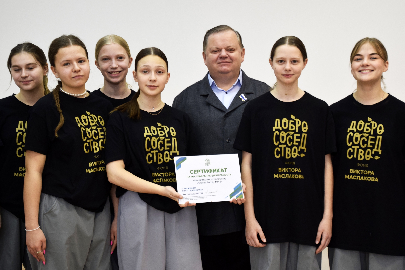 Гостями встречи стали коллективы ансамбля танца «Цветы Урала» и танцевальной группы «Dance Family MP-5», действующих под руководством Ольги Малашенко. Виктор Маслаков торжественно вручил командам сертификаты, предусматривающие траты на фестивальную деятельность – а также обсудил с юными танцорами их творческие планы и предстоящие выезды на региональные и всероссийские конкурсы.