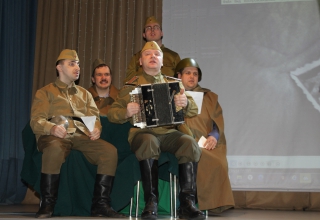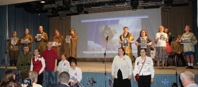 Звучали трогательные литературно-музыкальные и театральные композиции, в финале которых участники вынесли портреты своих родных-фронтовиков.