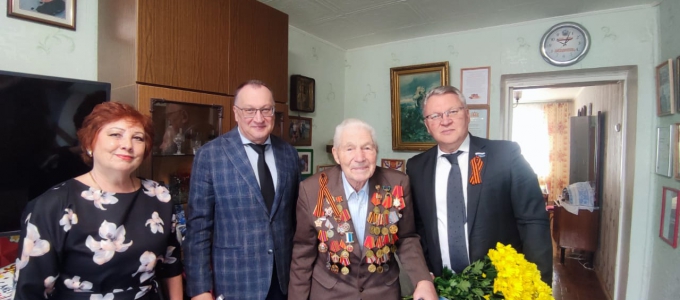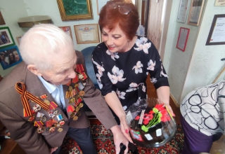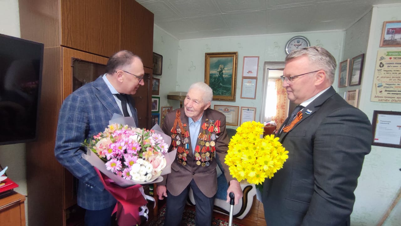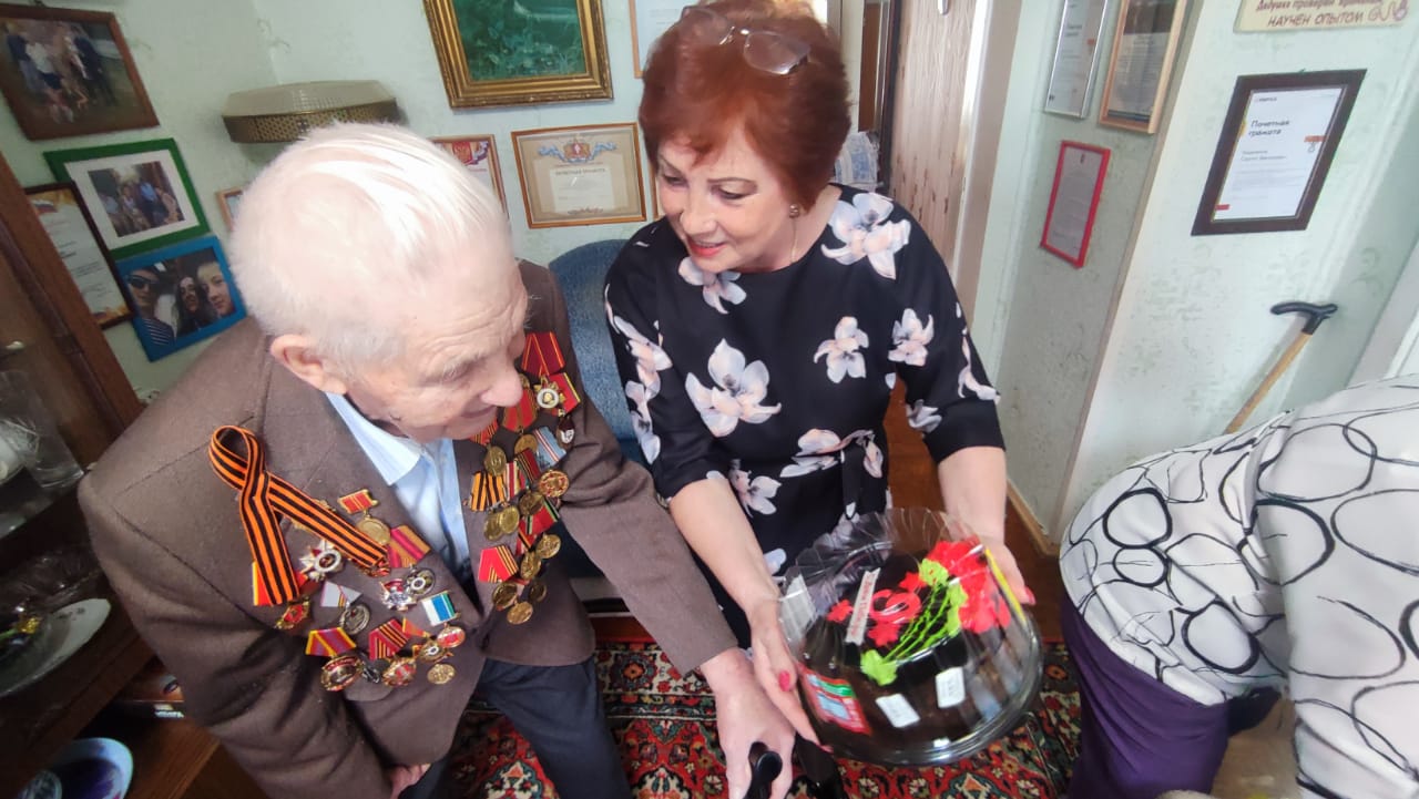 В дом к живой легенде, фронтовику, орденоносцу 101-летнему Сергею Васильевичу Кадачикову парламентарий приехал в дообеденные часы 5 мая. Хозяин дома встретил высоких гостей лично – со свойственной ему улыбкой, в парадной одежде, при орденах. В момент встречи – искренние объятия, теплые слова поздравлений, торт к чаю, цветы и подарки от депутата Законодательного Собрания Свердловской области Сергея Никонова, главы Качканарского городского округа Андрея Ярославцева, представителей партии «Единая Россия».