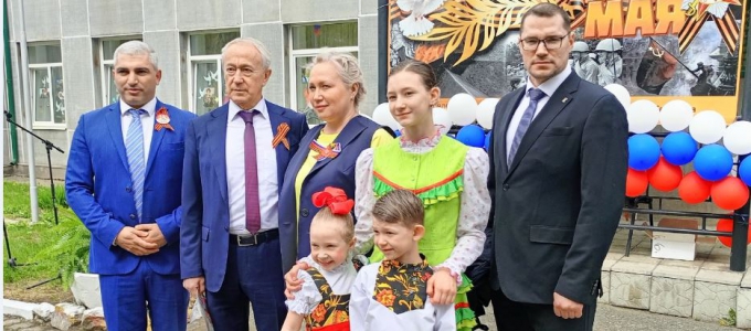 Вячеслав Погудин поздравил присутствующих на ступающим праздником, вручил подарок от партии «Единая Россия» ветерану Великой Отечественной войны Александру Васильевичу Федину.