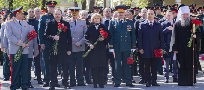 Цветы к памятнику также возложили представители командования Центрального военного округа, сотрудники силовых структур, ветераны Великой Отечественной войны, курсанты, представители общественных организаций Среднего Урала.