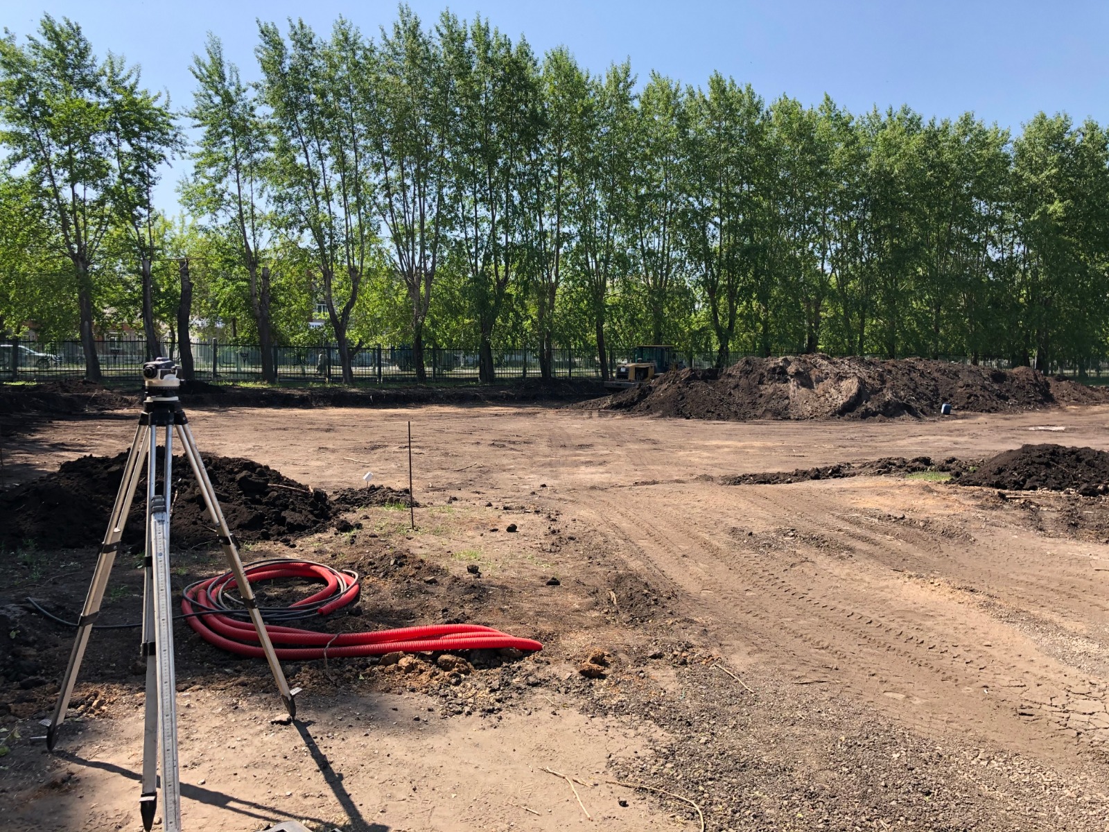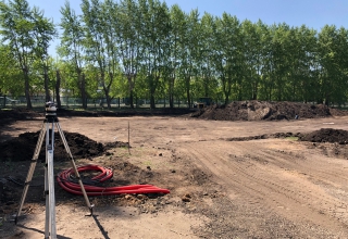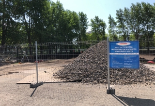 На городском стадионе «Олимпик» идет подготовка участка для будущего многофункционального корта. Подрядчик проводит земляные работы и закладку основания будущей спортплощадки, на втором этапе будет уложено покрытие, смонтировано освещение и ограждение.