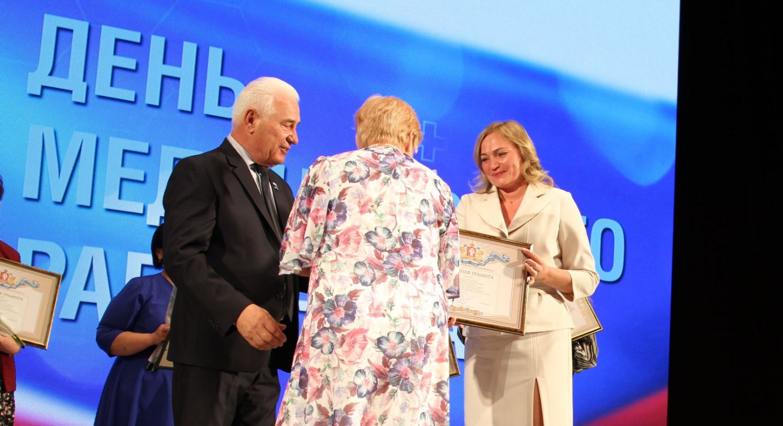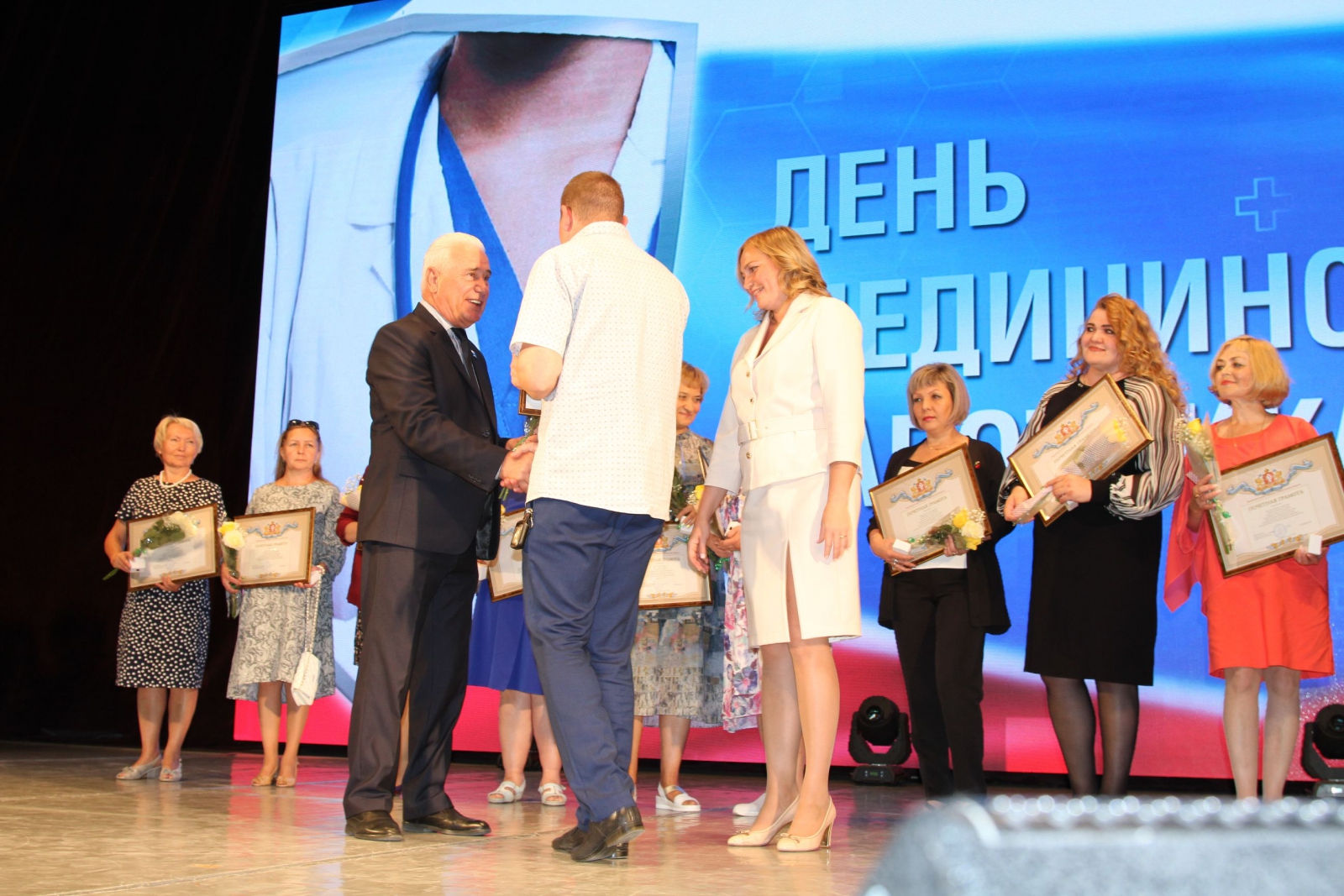 Виктор Якимов поблагодарил медиков за верность клятве Гиппократа и высочайший профессионализм, которые спасли множество пациентов, вернули тысячам горожан радость видеть и слышать мир, ходить по земле, любить и растить детей. А затем Виктор Якимов и Анна Соломеина вручили десять почетных грамот Заксобрания и четыре благодарственных письма медсестрам и докторам, лаборантам и фельдшерам, специалисту Роспотребнадзора.