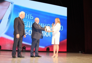 Под аплодисменты зала депутат Заксобрания и директор по персоналу УАЗа вручила главному врачу городской больницы Роберту Соловьеву пять жилищных сертификатов по 1 миллиону рублей каждый. Всех, кто сегодня воюет на переднем крае охраны здоровья каменцев, поздравил Виктор Якимов.