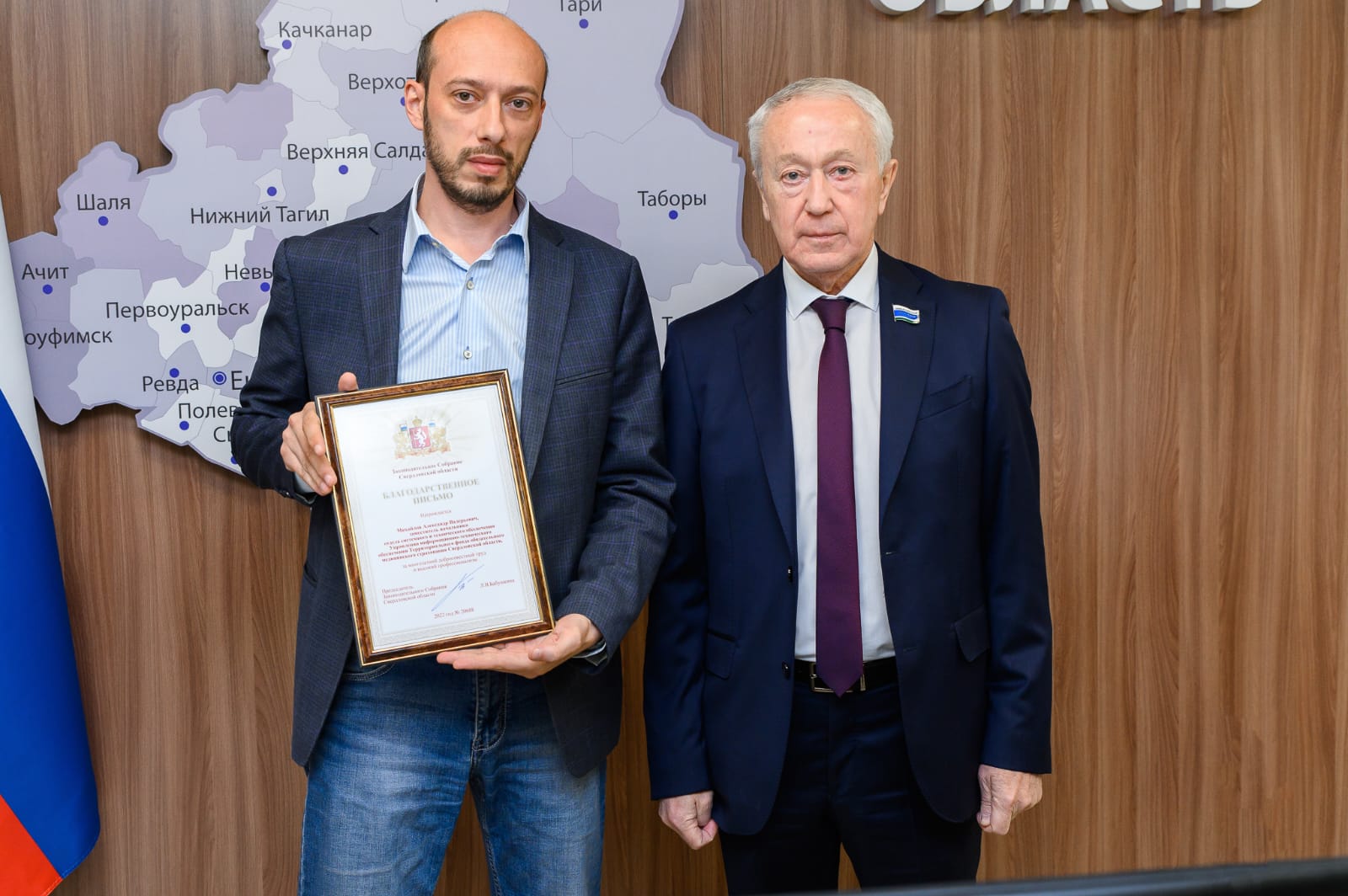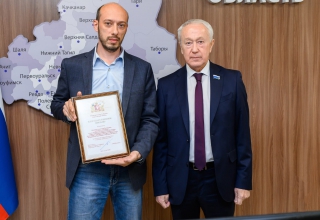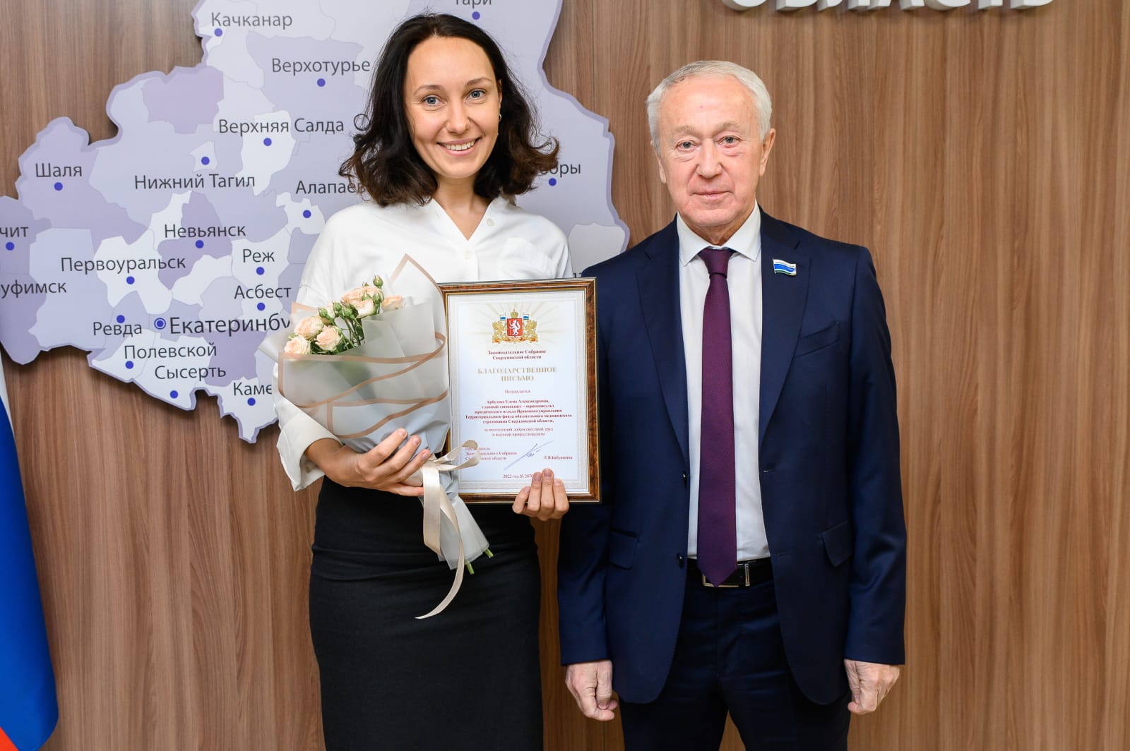 Председатель комитета Законодательного Собрания Свердловской области по социальной политике Вячеслав Погудин вручил награды Законодательного Собрания Свердловской области сотрудникам Территориального фонда обязательного медицинского страхования Свердловской области.