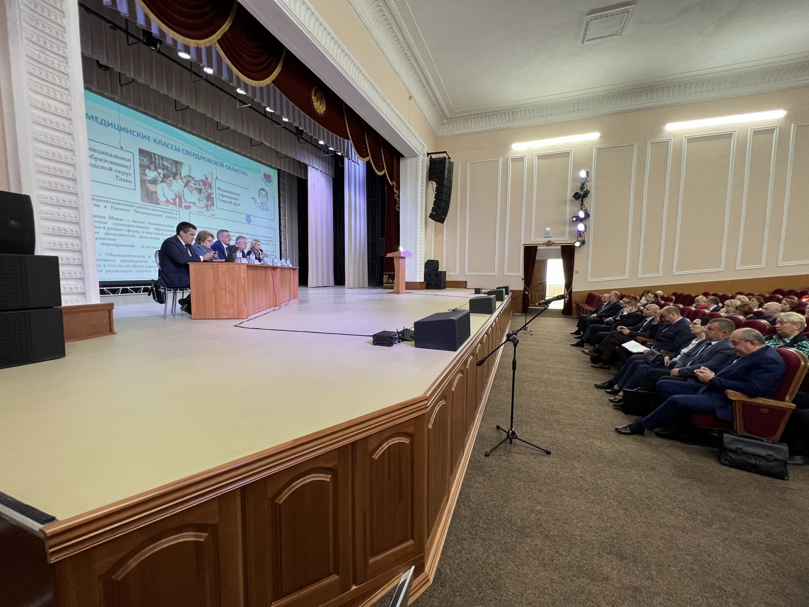 Заседание было проведено в Кировграде совместно с Первым заместителем Министра образования и молодежной политики Свердловской области Ниной Журавлевой и Заместителем Министра здравоохранения Свердловской области Денисом Демидовым. Заседание организовано в рамках реализации Указа Губернатора Свердловской области от 20.02.2023 № 58-УГ «О проекте «Медицинские классы Свердловской области» .