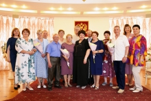 Знаки отличия «Совет да любовь» в этот день получили Алексей Федорович и Людмила Александровна Шпарута, Виктор Тимофеевич и Анастасия Васильевна Торговановы, Юрий Михайлович и Галина Владимировна Подкорытовы, Николай Александрович и Мария Николаевна Пироговы, а также Игорь Дмитриевич и Галина Васильевна Казаковы – отметившие «бриллиантовую» свадьбу, 60-летний юбилей своего брака.