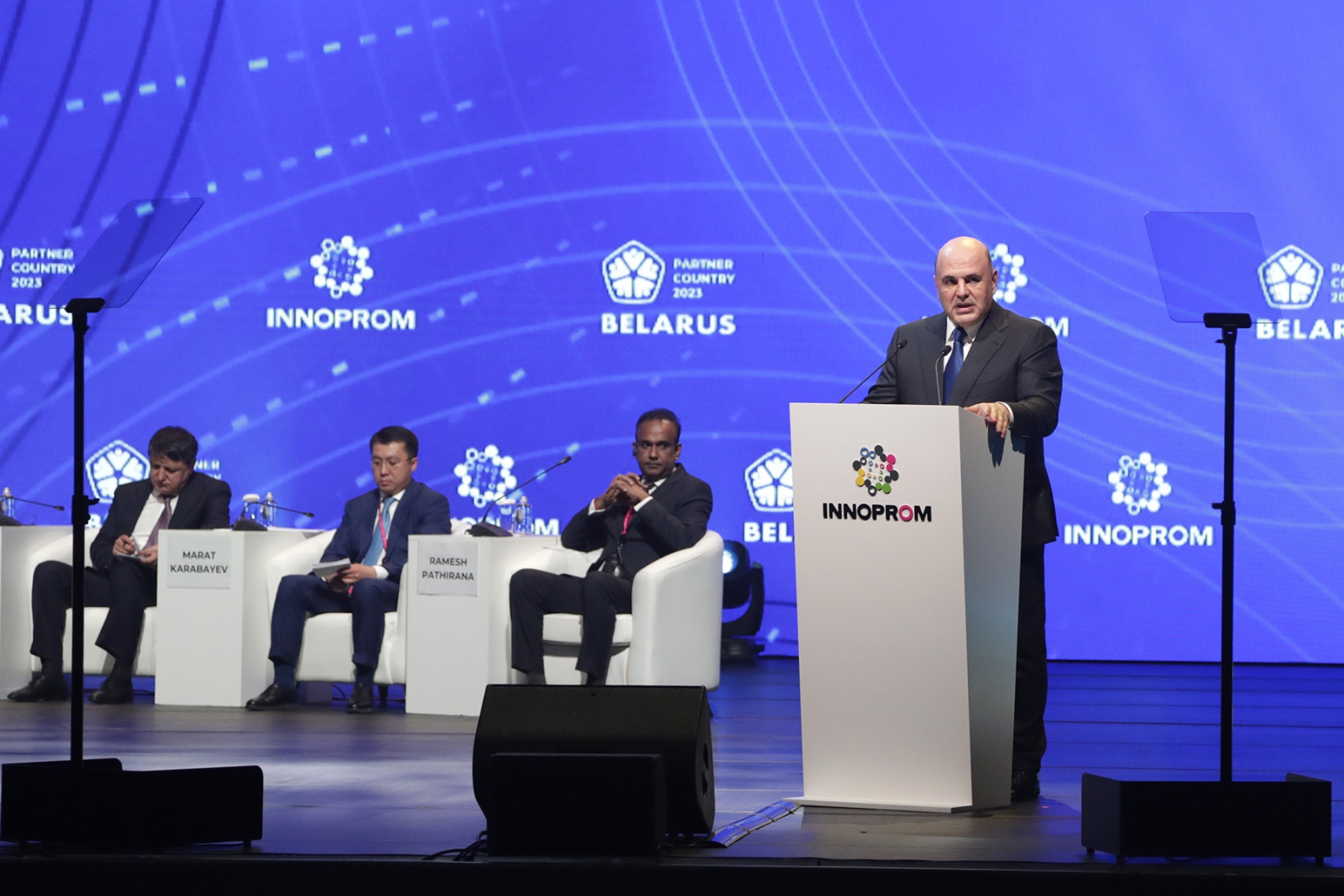 На главной стратегической сессии ИННОПРОМ-2023 выступили Председатель Правительства Российской Федерации Михаил Мишустин, Премьер-министр Республики Беларусь Роман Головченко, премьер-министр Республики Казахстан Алихан Смаилов.