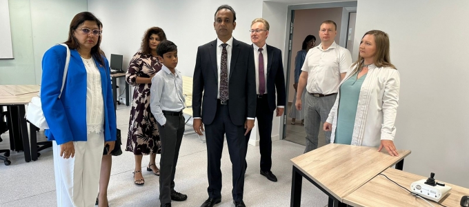 Министр промышленности и плантаций Демократической Социалистической Республики Шри-Ланка Рамеш Патирана, а также чрезвычайный и полномочный посол республики Шри-Ланка в РФ Джанита Абейвикрема Лиянаге посетили Екатеринбург в рамках проведения международной промышленной выставки ИННОПРОМ-2023. Первым пунктом визита делегации стал Российский государственный профессионально-педагогический университет в Орджоникидзевском районе. Для гостей провели обширную экскурсию: они посетили лабораторию беспилотных летательных аппаратов, а также ознакомились с деятельностью сварочных мастерских. В Технопарке универсальных педагогических компетенций гостям продемонстрировали уникальное инновационное оборудование, а также предложили опробовать его в действии. В рамках визита главой делегации был подписан Протокол о намерениях в области взаимного сотрудничества с ректором «Российского государственного профессионально-педагогического университета».