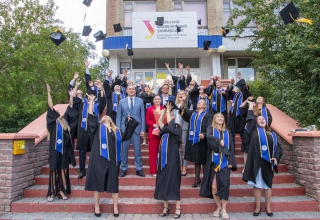 Поздравления и подарки вместе с дипломниками получили преподаватели вуза. Затем выпускники, педагоги и почетные гости сфотографировались на крыльце вуза, а счастливые дипломники запустили в воздух конфедератки, по студенческой традиции загадывая желания об успешной карьере.