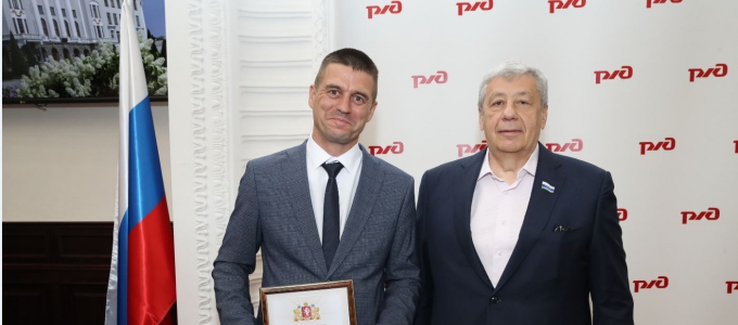 Аркадий Чернецкий от имени депутатов Законодательного Собрания поздравил железнодорожников с приближающимся профессиональным праздником и наградил Почетными грамотами Законодательного Собрания передовиков производства Свердловской железной дороги.